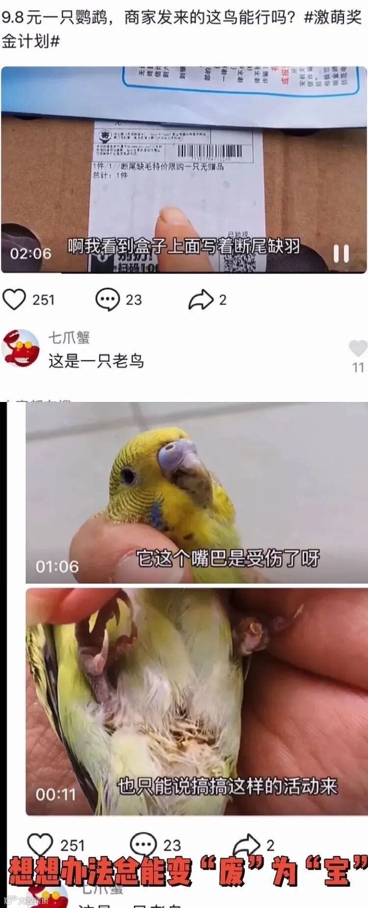 通过促销盲盒的手段将病伤或老鸟卖出去,来源:抖音