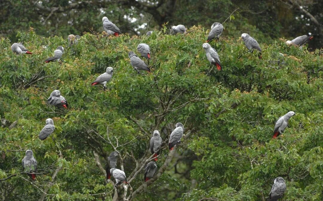 野外的非洲灰鹦鹉群体在一起栖息,图源:网络