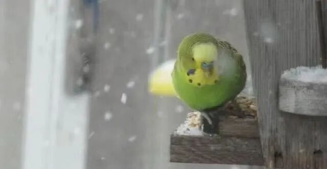 在加拿大,这只虎皮鹦鹉被目击到每天跟随麻雀族群一起觅食和寻找温暖一点的栖息处。但是进入11月后,加拿大的天气越来越冷,对于虎皮鹦鹉来说将面临生存考验。于是发现人在考量之后,还是决定救助牠,并给牠提供了一个漂亮的新家!来源:yahoo news