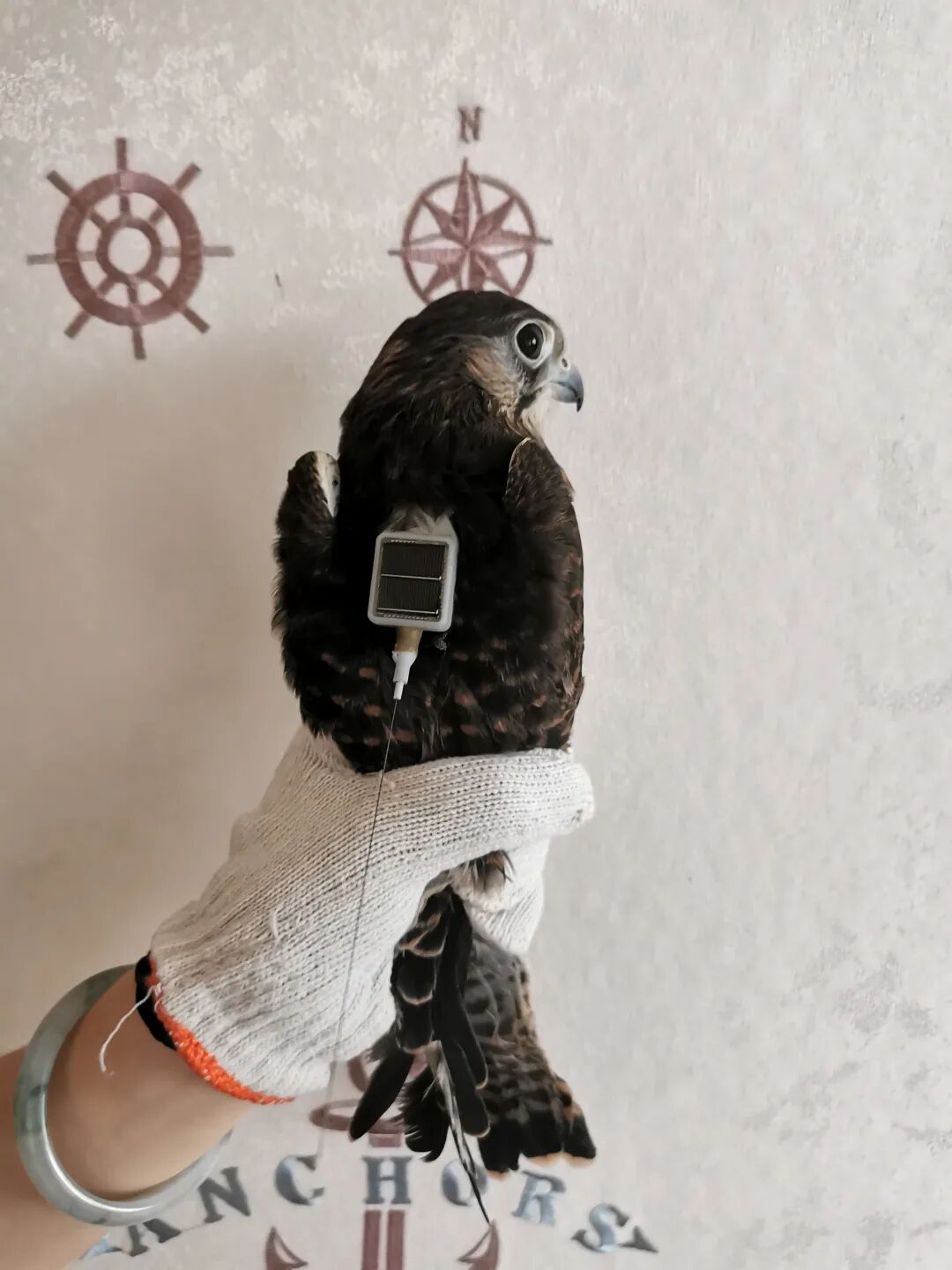 与体型相适应的GPS追踪器,提前1个多月开始给红隼做背负适应训练