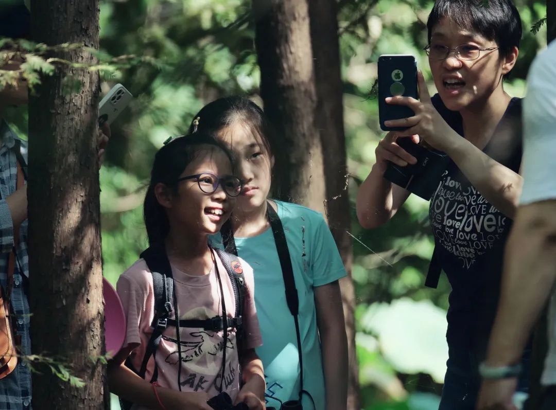 让候鸟飞宣教部、鸟医部高级顾问志愿者尹军老师(左一)与小溪流老师(右一),两位已在我们的公众活动上多次搭档,前一位是观鸟达人,举手投足都在认鸟识鸟,一位是多年生态科普导赏员,几乎随时随地,物种知识娓娓道来。