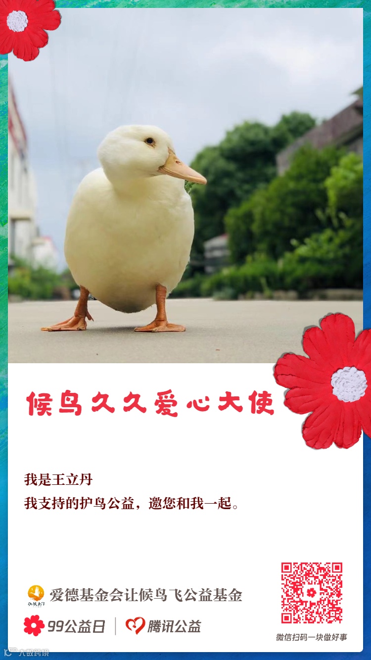 ③提供一张照片(可以是个人照片或自己喜欢的代表性图片),用于我们给您制作『候鸟久久』爱心大使海报,海报模板统一以腾讯公益此次99公益日爱心海报为准,显示文字及图片设计可交流;