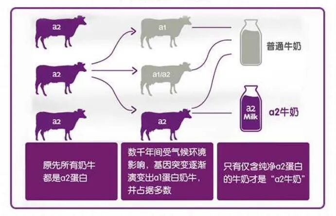 不是所有的奶牛都能产出含有天然的全A2型蛋白质的牛奶,西方的奶牛中只有30%的奶牛能产生A2酪蛋白!所以a2通过DNA检测技术甄选A2基因奶牛,确保其所产的牛奶含A2型蛋白质。