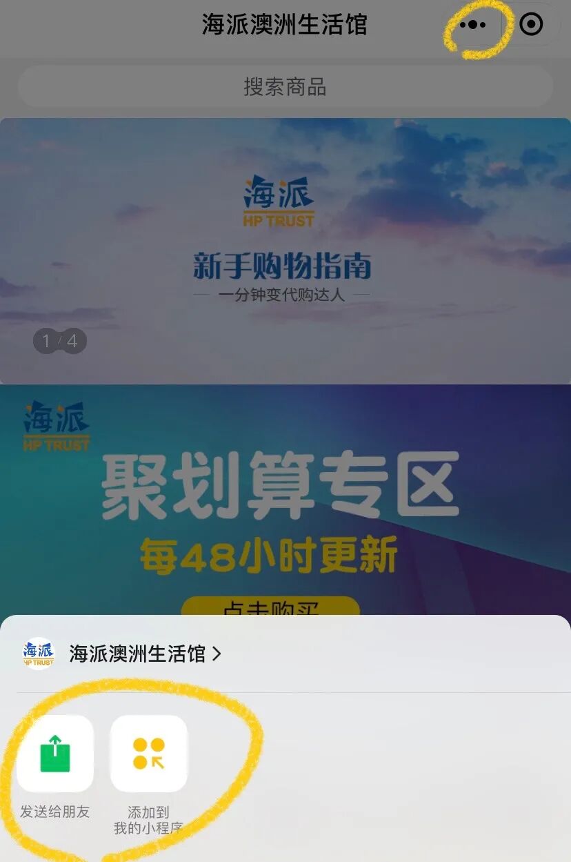 进入小程序后,记得点击左上方的“…”按钮,把小程序添加进收藏夹哦,这样每次下拉菜单就可以找到海派啦!