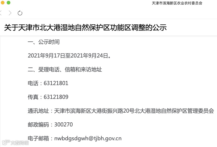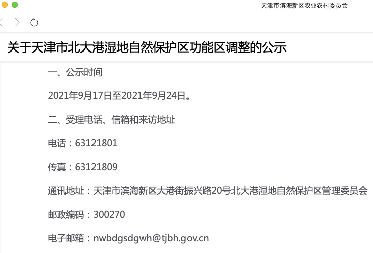 通讯地址:天津市滨海新区大港街振兴路20号北大港湿地自然保护区管理委员会