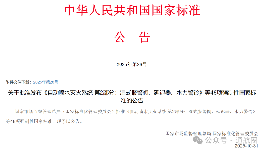 据市场监管总局网站10月31日消息,国家市场监督管理总局、国家标准化管理委员会发布公告批准发布一批强制性国家标准,其中包括《民用无人驾驶航空器系统运行识别规范》(GB 46750-2025),《民用无人驾驶航空器实名登记和激活要求》(GB 46761-2025)两项新编制的强制性国家标准,将于2026年5月1日起实施。