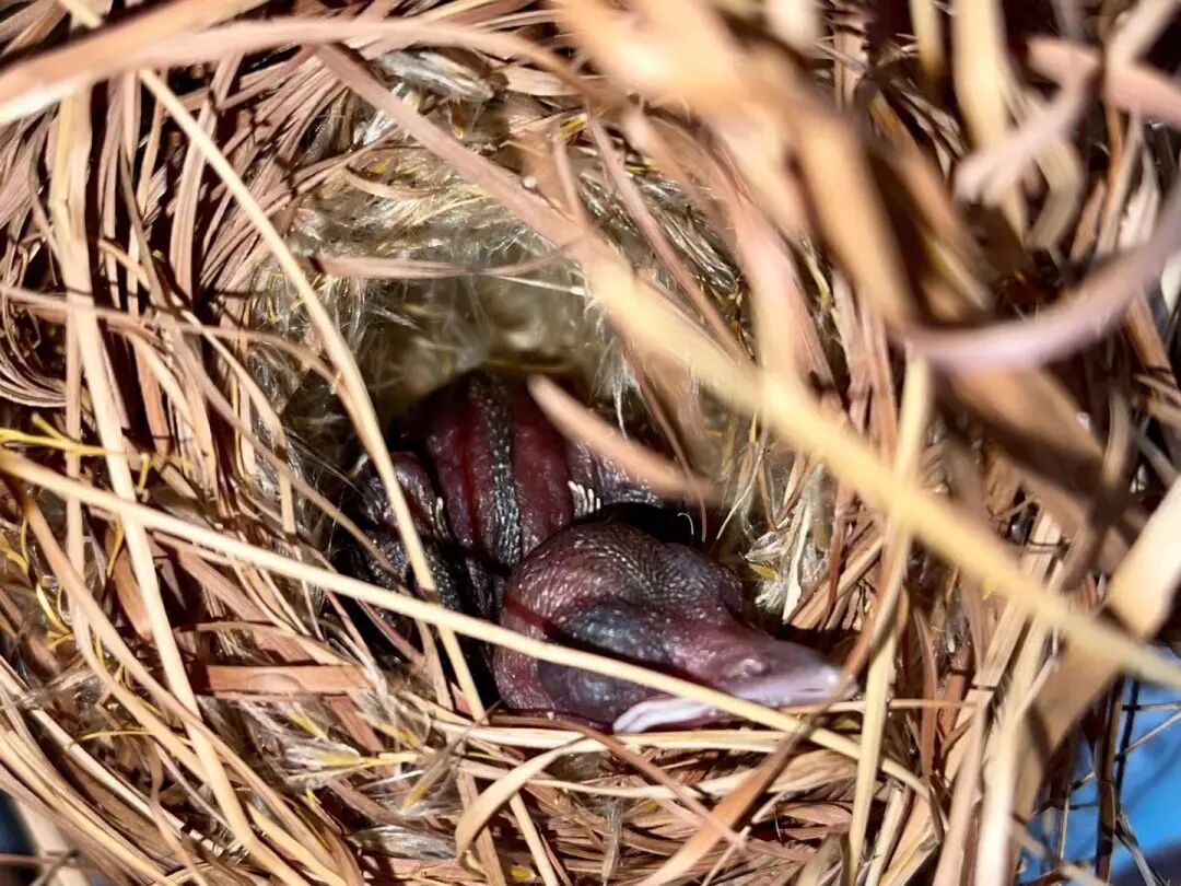 随后,周翀将这只雏鸟带回家,找来在湿地巡视时捡到的一个废弃鸟巢,把它放进去,它立刻就安静了。