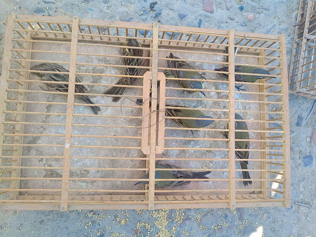 据养鸟人表示,他们饲养的野生鸟都是从附近的宏昊宠物集贸市场买来的(当地俗称狗市)。5月16日,志愿者对周日大集进行巡护,发现集市内有贩卖野生鸟类现象,暗访中发现鸟市里有超过50只的野生鸟被贩卖,主要有国家二级保护动物红蓝点颏数只,三有保护动物黄雀、远东山雀、普通朱雀、朱顶雀等。