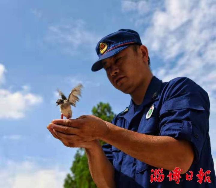 7月23日上午,淄川公安分局森林警察大队,联合淄川区国有林场、淄川区森林消防中队等有关单位在淄川林场五松山林区共同放飞解救的国家野生保护鸟类70余只。