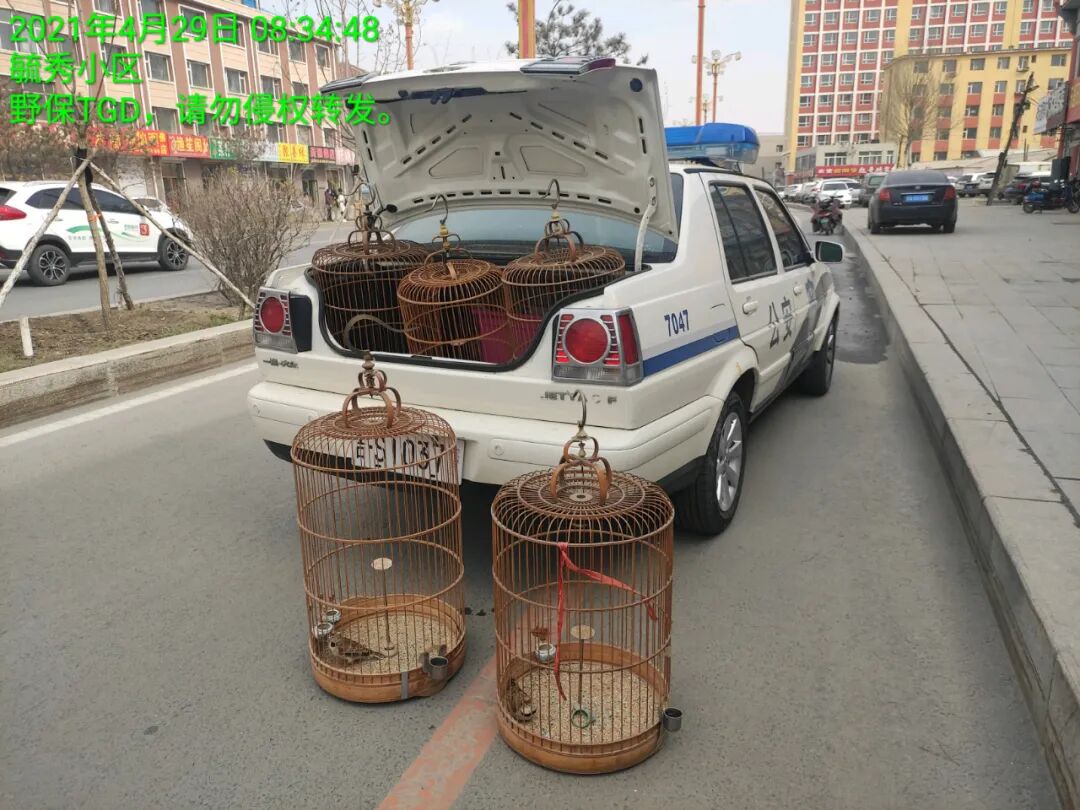 这些被救助的鸟儿,有的是被藏在五金店内暗中交易,有的则被公然挂在超市门口展示,部分窝藏点中更发现打笼等大量非法盗猎工具。在举报后,志愿者协助公安机关现场罚没鸟儿及相关捕猎工具,并在鉴定、评估后,于30日早上放飞鸟儿。