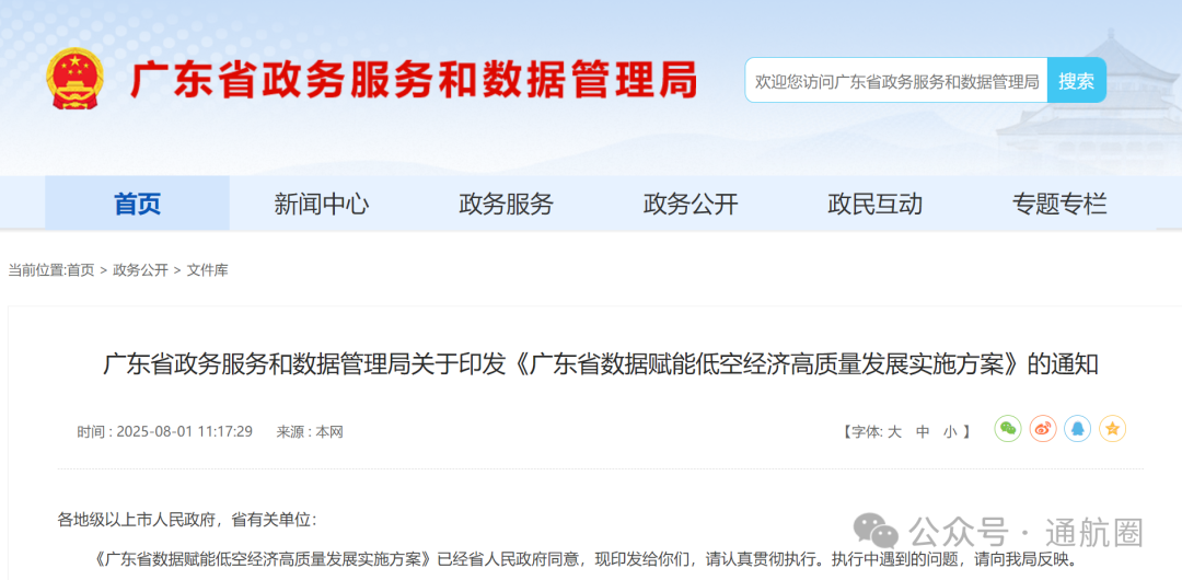 8月1日,广东省政府服务和数据管理局印发的《广东省数据赋能低空经济高质量发展实施方案》正式公布,该方案围绕健全低空数据标准规范、夯实低空数据底座、加强低空数据开发利用、完善低空数据产业生态、强化低空数据安全保障五个方面提出15项主要任务。其中明确,到2026年底,初步形成广东省数字低空标准体系,构建全省一体化低空数据底座,推动低空数据要素开发利用,打造一批具有广东特色的数据赋能低空经济示范场景。到2027年底,建成低空行业可信数据空间,孵化一批低空数据产品服务企业,基本形成创新驱动、开放共享的低空数据产业生态体系。
