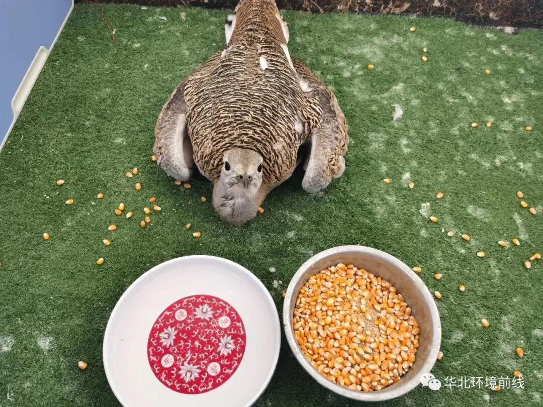 兽医孙延章远距离观察直到晚上7点,大鸨开始活动并进食。
