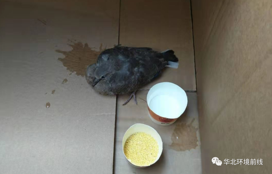 正定分队救助了一只斑鸠幼鸟。据正定分队负责人梁玉龙介绍,一只斑鸠幼鸟飞到了一间仓库里面。正定分队的杨欣奇找来了小米和水进行救助,将其放在了院子里,小斑鸠吃饱之后自己飞走了。