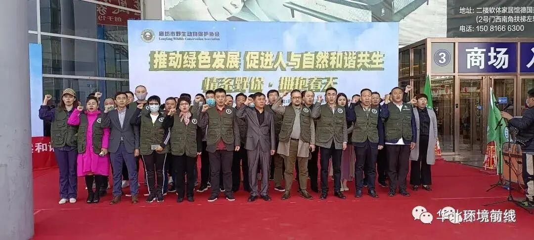 华北环境前线廊坊分队、廊坊市野生动物保护协会在廊坊市自然资源和规划局的指导下,联合中国东方文化研究会杨家将文化工作委员会,在廊坊市天和古玩城开展主题为“推动绿色发展、促进人与自然和谐共生暨情系野保•拥抱春天”大型宣传活动。