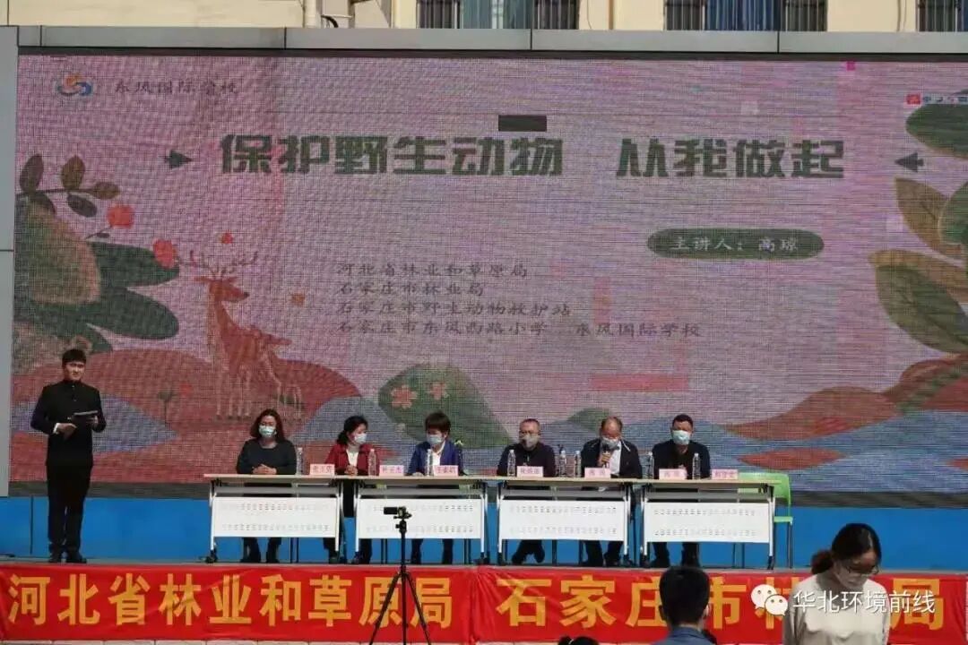 下午,河北省林业和草原局、石家庄市林业局、市野生动物救护站走进石家庄东风国际学校,1500余名学生参加自然教育活动。