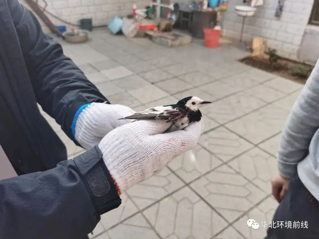 白鹡鸰的翅膀被弹弓打伤,救护站负责人到村委会与该村负责人沟通,向村民普及保护野生动物知识,严禁村民用弹弓伤鸟。