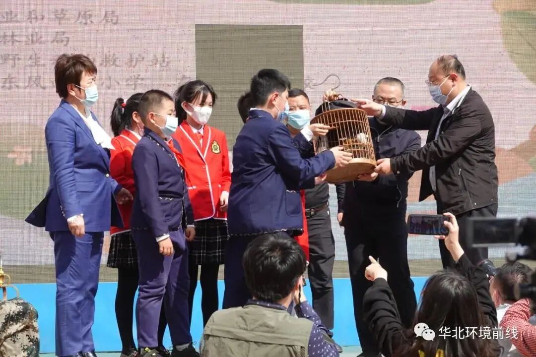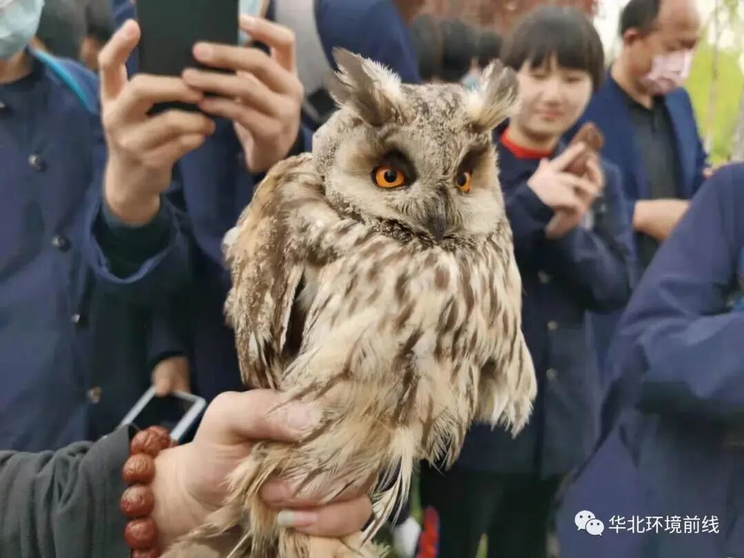 4月22日为世界地球日,当天下午石家庄市野生动物救护站走进石家庄北郡小学,举办自然教育活动,向该校师生开展问卷调查,成功放飞国家二级保护动物雀鹰。