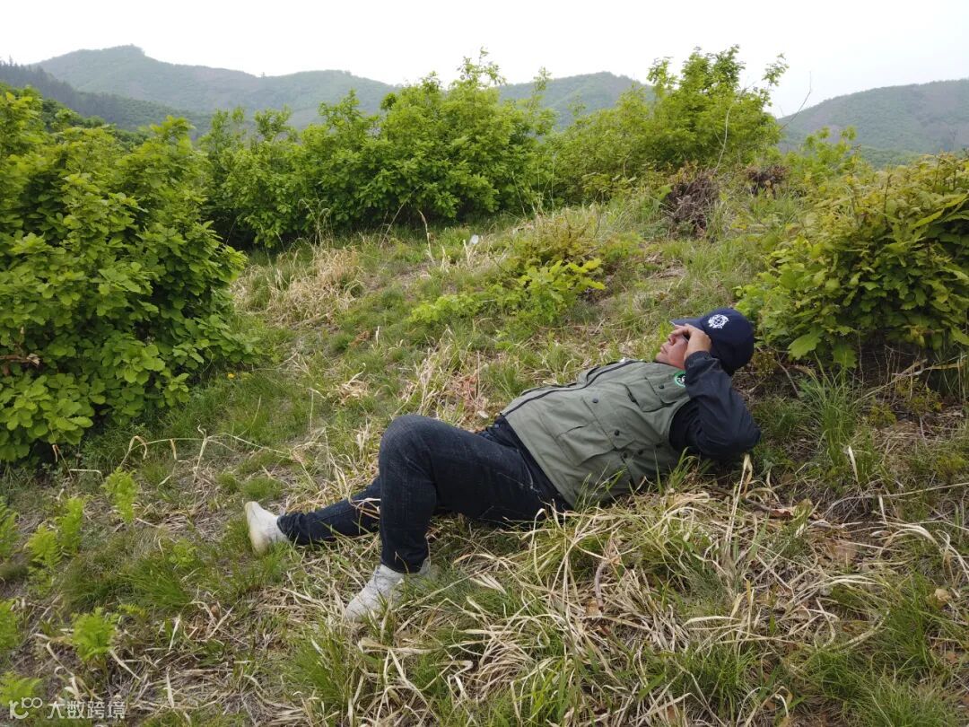 躺在草地上休息的是曹大宇(爱鸟胖哥),他之前在巡护途中摔了一跤,没及时医治,导致伤势越来越严重,诊断出是腰间盘膨出和腰肌劳损,医生嘱除让针灸理疗吃药,最重要的是得“养着”。腰伤压迫神经导致腿、脚都疼,偏偏走路都成问题的人,却因为救鸟儿没法歇,养伤一天推一天。当天在抚顺连爬几个山头,下山时胖哥直接瘫在了山路上。