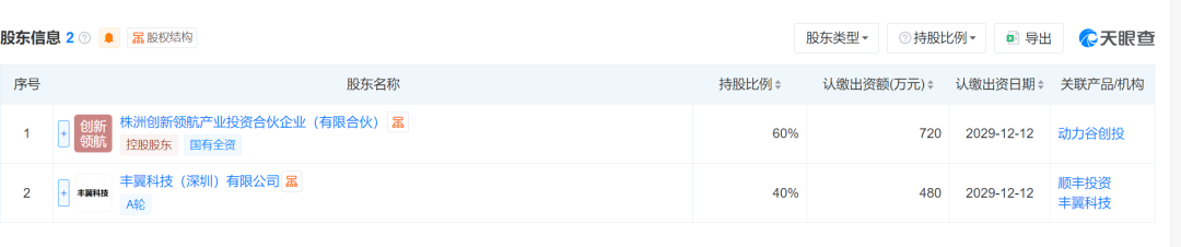 据天眼查工商信息显示,湖南新翼智能科技发展有限公司注册成立于2024年12月,国有企业株洲创新领航产业投资合伙企业(有限合伙)持股60%, 顺丰旗下的丰翼科技(深圳)有限公司持股40%。