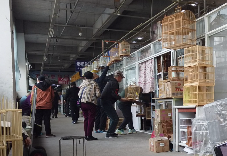 4月21日,让候鸟飞伙伴东北野战军护鸟团队来到辽宁锦州古塔区花鸟鱼市巡护,在市场二楼上发现有两家店铺违法贩卖一共19只国家二级保护动物画眉鸟。