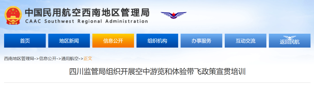 此外,据西南局8月18日消息,为进一步规范空中游览和体验带飞活动,强化通航安全管理,根据民航西南地区管理局统一部署,四川监管局于近日组织辖区内全体通航单位开展政策宣贯培训,四川监管局孙建新副局长,飞标处、运输处、航安办相关监察员,各通航公司主要负责人及运行管理人员参会。