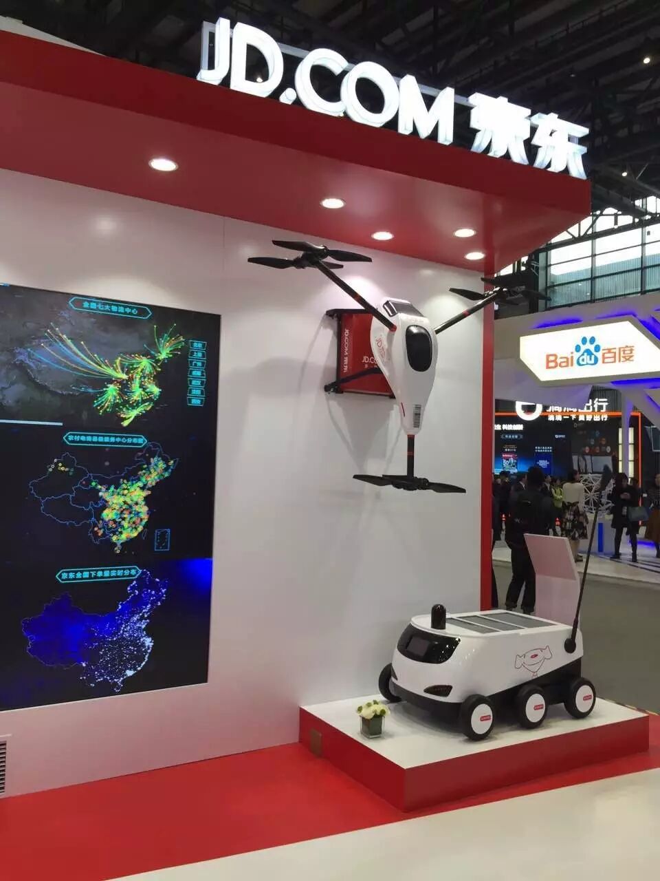 京东展示的由“无人机”“无人车”“无人仓”共同构成的“智慧物流”场景,京东这一系列“黑科技”的集体亮相成功吸引了众多参会领导及嘉宾的目光。