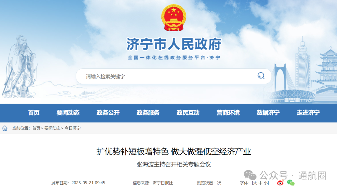 据通航圈了解,就在上月4月28日,济宁市交通运输局专门组织召开全市低空经济高质量发展座谈会议,济宁市交通运输局党组成员、副局长尹哲学主持会议并强调,一要明确目标任务,认真研究国家和省有关法律法规,结合自身工作职责,明确产业布局和发展路径,为低空经济高质量发展提供坚实保障。二要迅速行动,进一步加强研究谋划,优化针对性措施,加快强链补链延链,在基础设施建设、应用场景搭建、飞行体系监管等方面汇聚各方力量、有效补齐短板,为低空经济高质量发展注入强劲新动能。三要聚焦高质量发展首要任务,开展精准招商工作,充分发挥我市在新能源配件、装备制造等领域的产业链优势,聚焦低空经济行业头部企业开展重点招商,从土地、厂房、资金等方面给予充分要素保障,为济宁市低空经济产业高质量发展提供有力支撑。