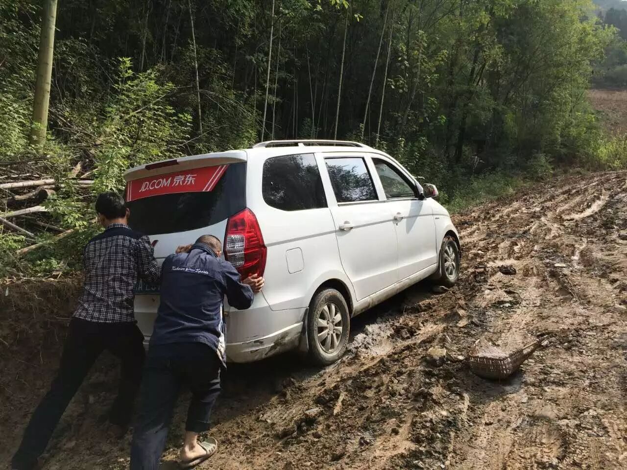 在县城送货,不比城市的马路又宽又平,车开在乡道上,出县城两三公里就遇到爬坡路,遇到雨天,路面泥泞不堪。华正鹏回忆,一次雨天,面包车开着开着就陷入了泥泞,他挂一档,猛踩油门,将方向盘往左往右打,试图把车从泥泞里开出来,但在这泥地里没那么容易。当他着急得满头大汗时,几位路过的老乡停下脚步一起帮忙想办法,几次尝试都因为轮胎打滑失败了。最后老乡们帮忙捡小石块垫在车轮后面,面包车才总算被推出来了。
