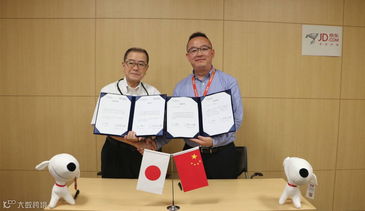 日本珍珠金属株式会社社长兼三条国际交流协会会长高波久雄(左)与京东商城服饰家居事业部家居家装部总经理周新元(右)签订战略合作协议