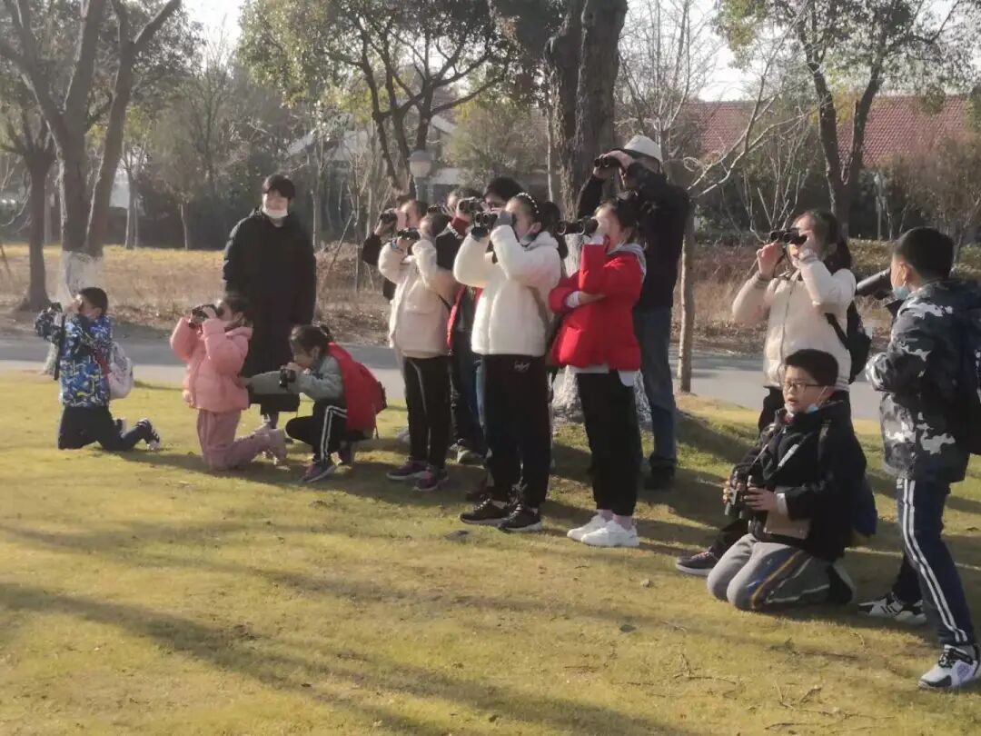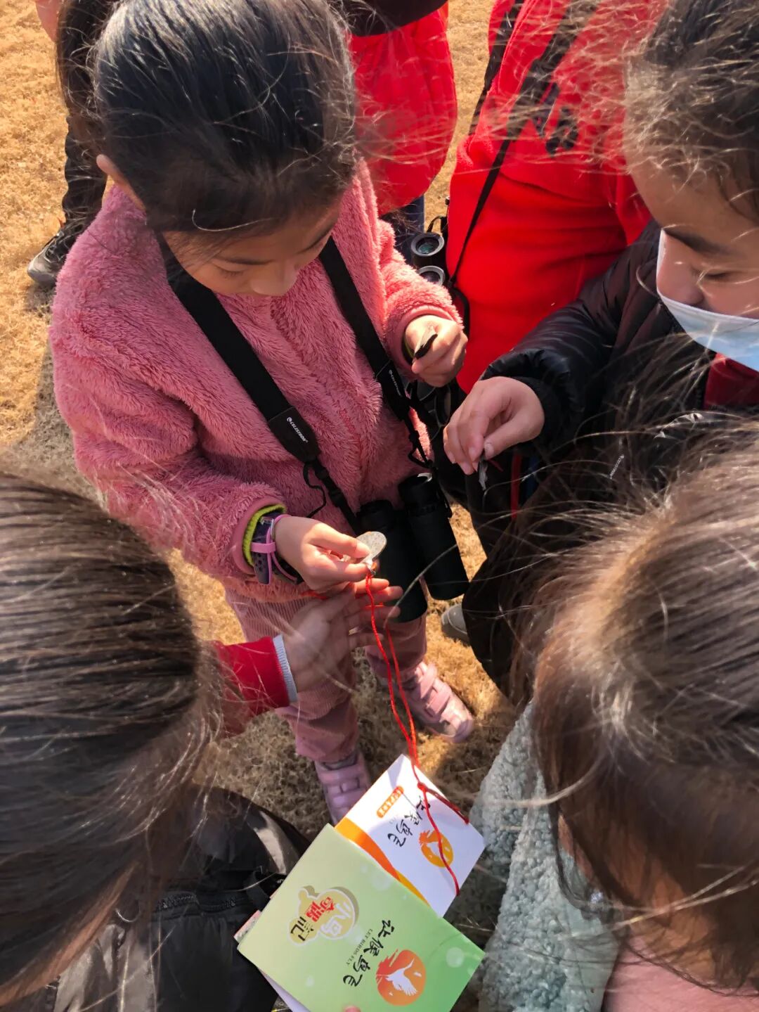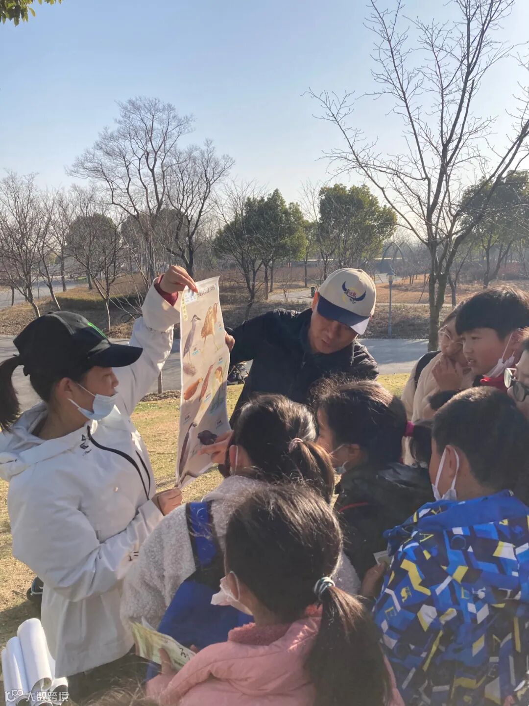 由上海市宝山区鹿鸣学校四年级同学家长Tracy发起组织,她之前与女儿一同参加过让候鸟飞的顾村公园观鸟,自己平时更是自然爱好者。作为自然教育活动的发起者,Tracy完全是装备齐全,十分专业。不仅带齐了大幅鸟类图鉴,在活动正式开始前,与军老师一同为小朋友进行了鸟类鉴赏小课堂,用做游戏的方式引领小朋友进入鸟类的世界,并学会运用望远镜与鸟类建立友好密切的关系。