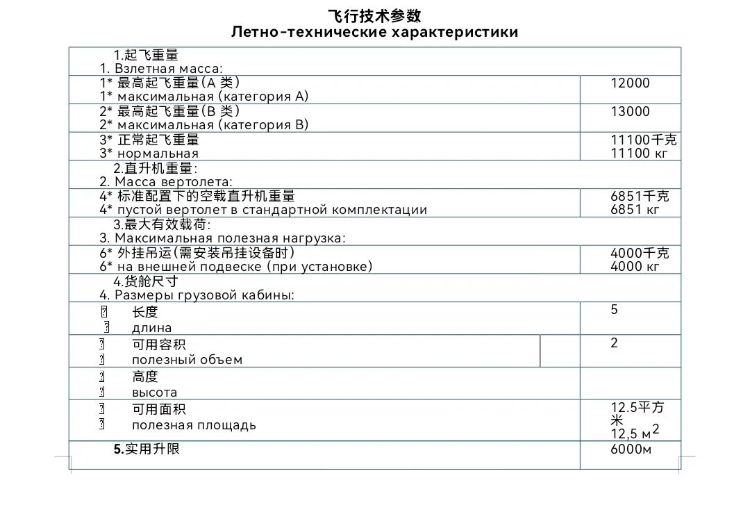 1.米-8/17 直升机的货运型是基本型,可在货舱内或外部悬挂装置上运载重达4000 公斤的各种货物。