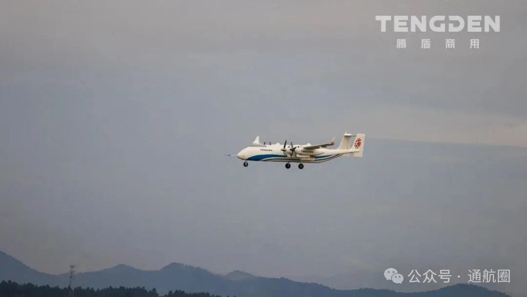 腾盾双尾蝎D拥有四台电能发动机,飞行时速340公里,起飞重量4.3吨,续航里程2500公里,可升空极限达10000米,独创可拆卸机身模块,运输、应急、气象等各种场景作业灵活切换,配备智能化程度极高的腾盾无人智能驾驶系统,可实现一键起飞,单人可同时监控10架飞机,三小时可实现省域飞行全覆盖。