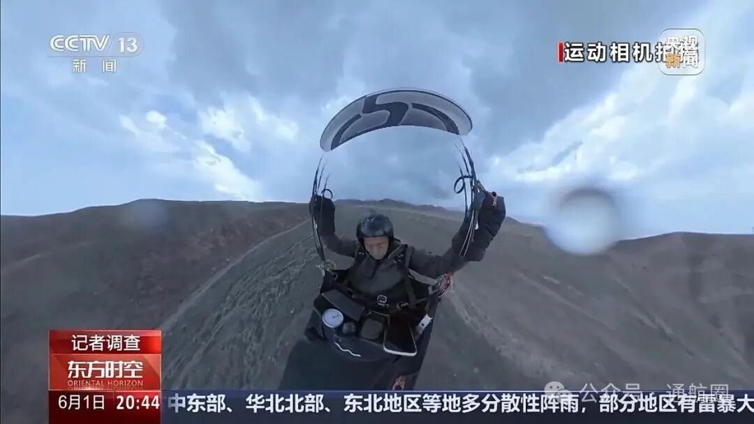 运动相机画面显示,对流云里的水汽和冰晶还在脸上、身上和装备上结起一层冰霜。手套的拉链没有拉紧,彭玉江用冻僵的手努力控制滑翔伞,朝着北方飞去。终于,豁然开朗。