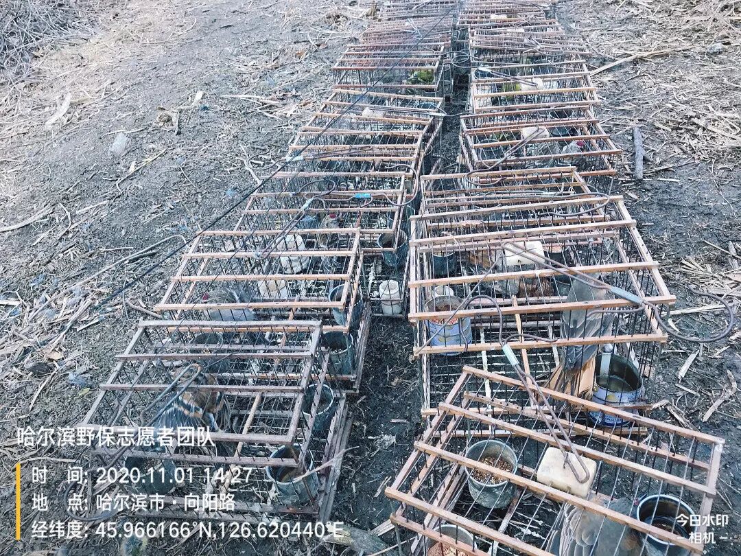随着气温骤降,黑龙江北部开始降雪,大批候鸟陆续南迁,非法捕鸟也进入高峰期,在2个月(10月—11月)的巡护时间里,冰城野保志愿者救助被困笼中各类野生鸟的2200余只。