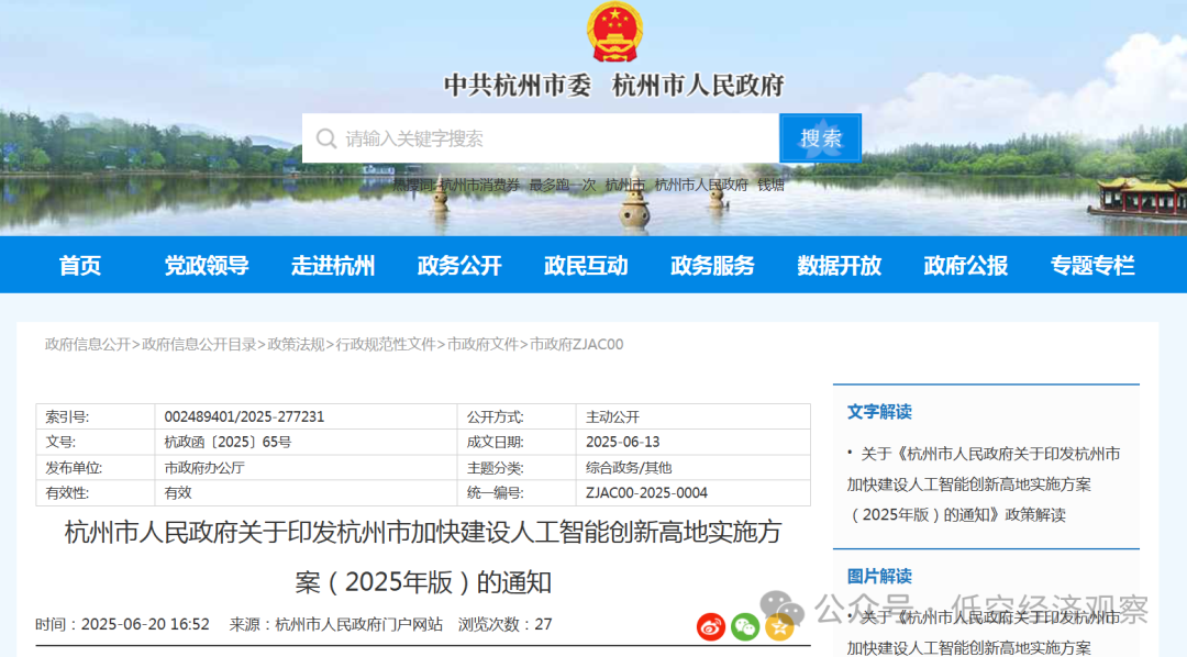 4.加速场景牵引创新的系统性实践。全面推进“杭州AI+”场景开放示范工程。面向城市治理、市政建设、智能制造、商贸旅游、文化创意、健康医疗、教育教学、金融投资、低空经济、科学研究等领域,开展面向人工智能场景的策划、开放、路演、对接、落地、推广全流程工作,发布场景“机会清单”和企业“能力清单”;率先开放一批政府、国企掌握的公共场景,建立人工智能+场景的开放、对接、合作、推广机制;推进医学、具身智能等应用中试基地建设。在制造、医疗、消费、金融、交通、教育、文创、科学、治理等领域培育一批示范场景和应用。
