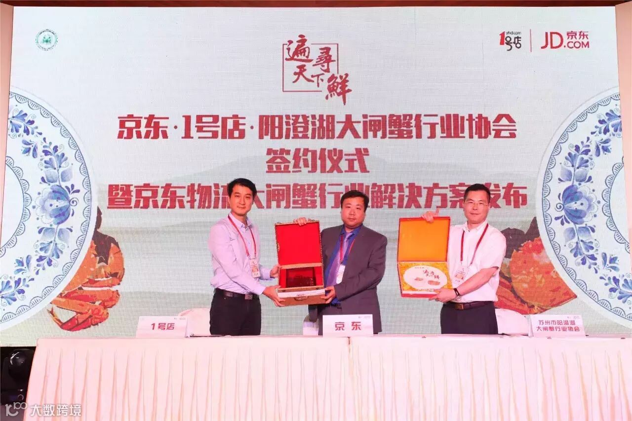 8月5日,京东生鲜在江苏省苏州市阳澄湖畔宣布:携手1号店,成为阳澄湖大闸蟹协会的顶级战略合作伙伴,这也是京东生鲜连续第三年成为阳澄湖大闸蟹协会认证的战略合作电商平台。而协会秘书长严金虎也在会上表态:今年阳澄湖开湖“第一捞”大闸蟹将全部给到京东,同时今年最高品质的阳澄湖大闸蟹也将优先在这两家电商平台上供应,全平台保真、保鲜,满足消费者一站式尝鲜需求。即日起,消费者可登陆京东生鲜提前选购阳澄湖大闸蟹礼券,享受全场蟹券买一送一、死蟹包赔等钜惠服务。