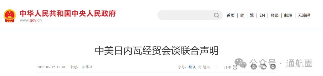 对于航材市场来说,以下是新华社公布的中美日内瓦经贸会谈联合声明详情: