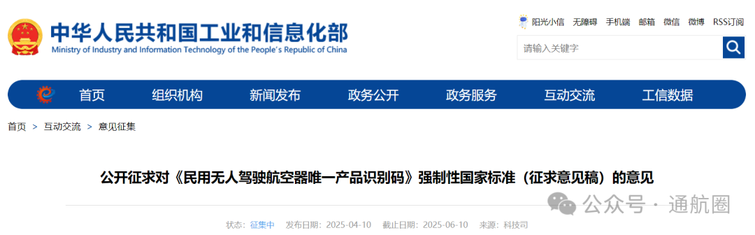 值得一提的是,就在本月10日,工信部发布强制性国家标准《民用无人驾驶航空器唯一产品识别码》(征求意见稿)。文件规定了民用无人驾驶航空器整机唯一产品识别码的编码规则、登记备案、产品外包装标识、机体表面标识、存储与安全、广播与报送的相关要求,适用于微型、轻型、小型、中型和大型民用无人驾驶航空器整机的产品管理,不适用于模型航空器与自备动力系统的飞行玩具。意见反馈截止日期为6月10日。(又一强制性国家标准《民用无人驾驶航空器唯一产品识别码》征求意见稿发布,6月10日截止)