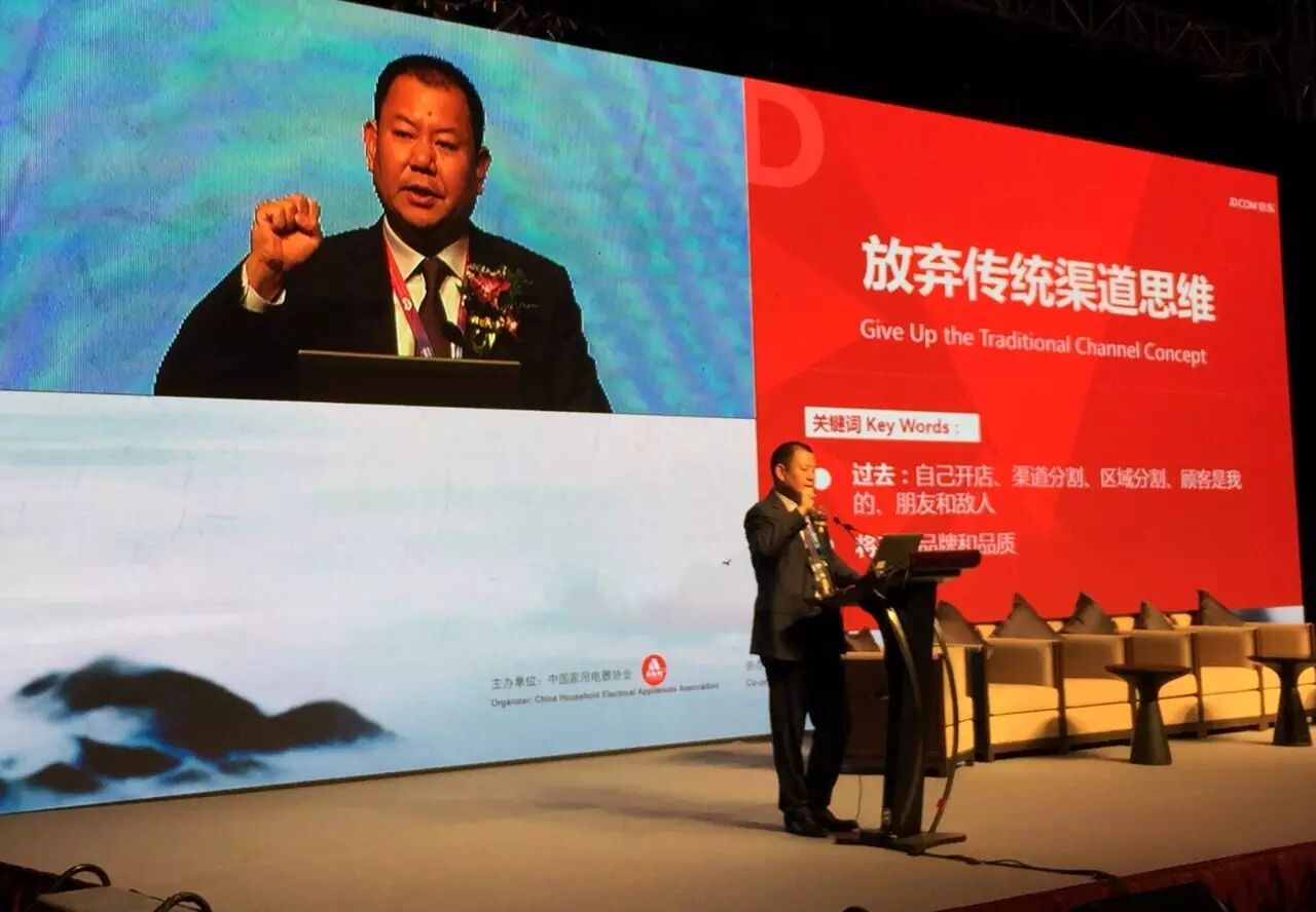 京东家电事业部总裁闫小兵在“中国家电发展高峰论坛”上做题为“顺势而为”的主题演讲