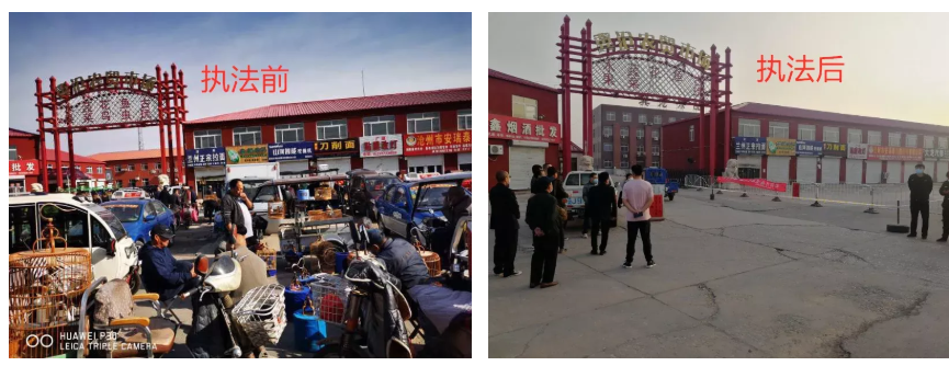 冀沧农贸市场鸟市前后鲜明对比(左为志愿者4月25日举报时拍摄,右为志愿者5月2日拍摄)