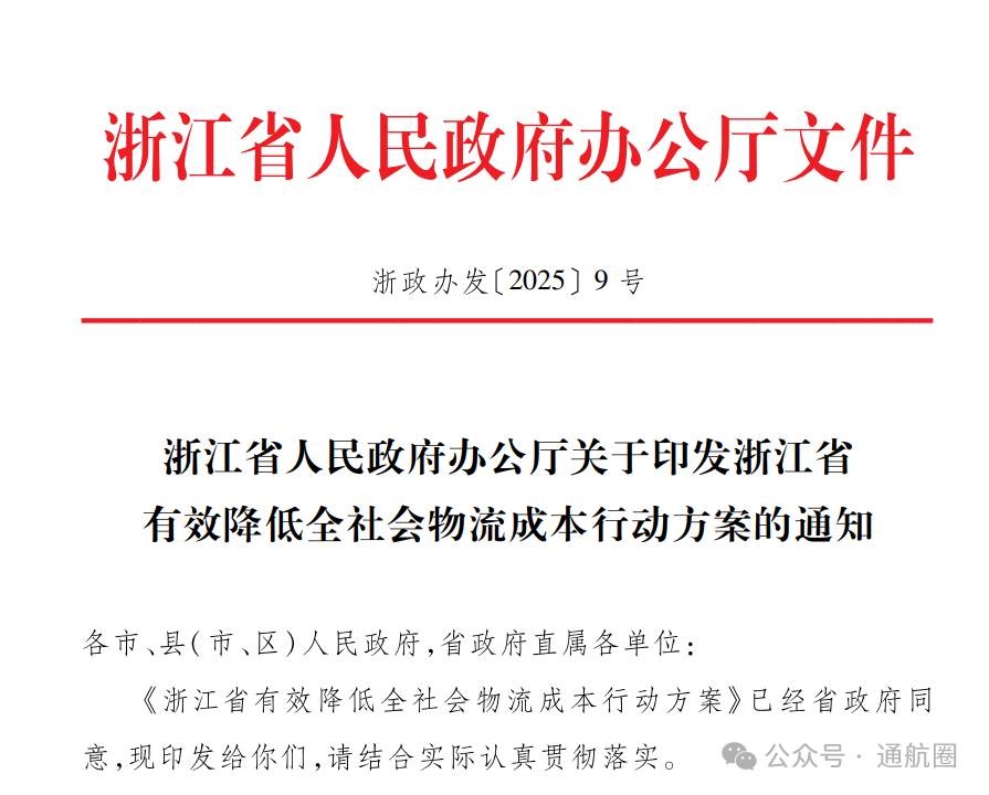 浙江省有效降低全社会物流成本行动方案