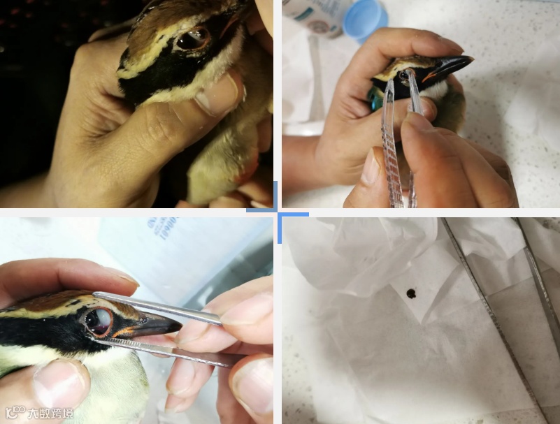 早早的结束了巡护,约让候鸟飞鸟医部军老师一起去小邱家接鸟。经过一下午的点水静养,仙八应激反应已经稍有恢复。拿到手亲眼目睹了这双眼,才发现原是眼角处混入了异物,将眼睑撑出,眼球也被挤压到角落中。