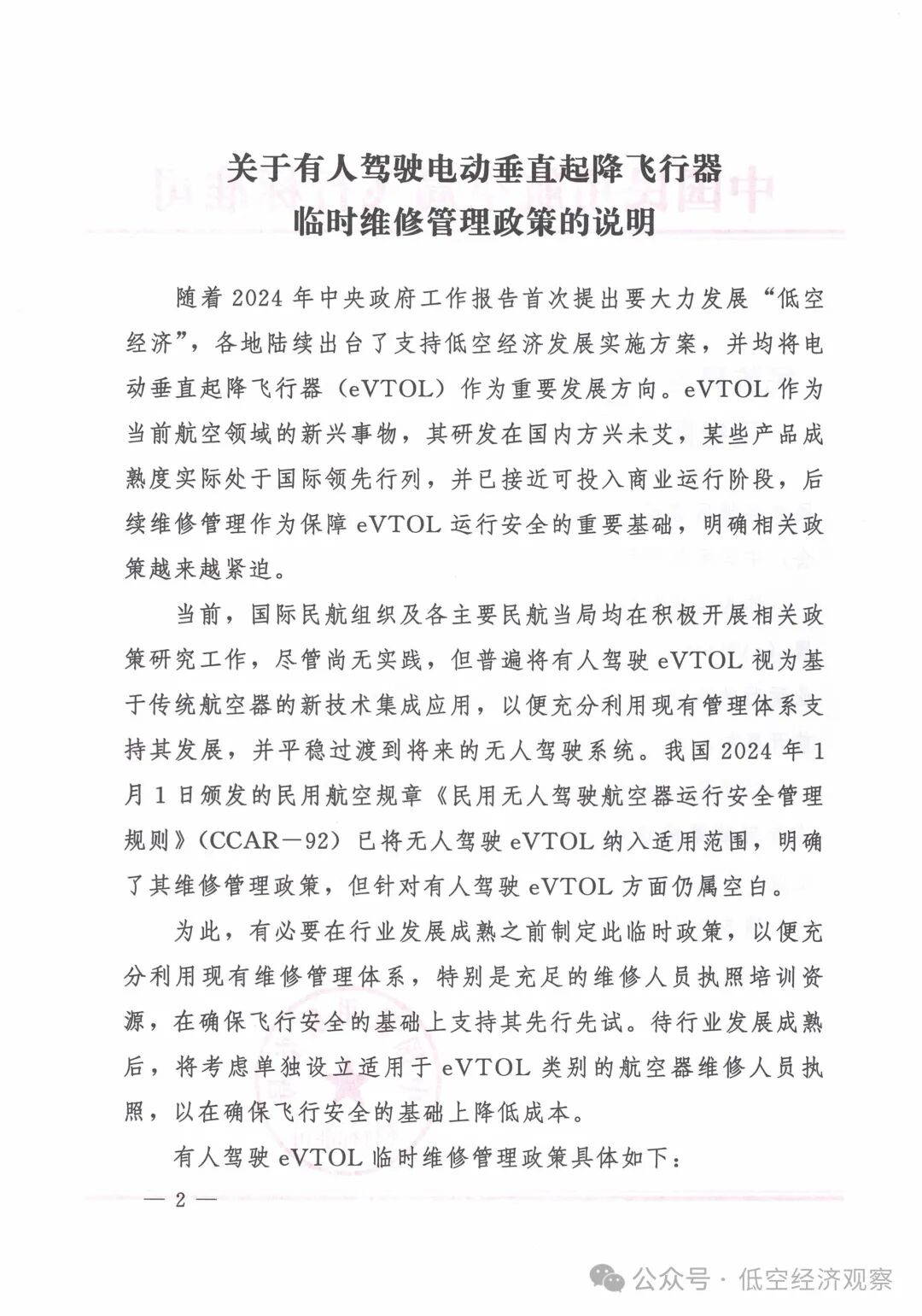 「低空经济观察」获悉,2024年1月颁发的民用航空规章《民用无人驾驶航空器运行安全管理规则》(CCAR-92)将无人驾驶eVTOL纳入了适用范围,明确了其维修管理政策,但针对有人驾驶eVTOL方面仍属空白。为此,有必要在行业发展成熟之前制定此临时政策,以便充分利用现有维修管理体系,特别是充足的维修人员执照培训资源,在确保飞行安全的基础上支持其先行先试。待行业发展成熟后,将考虑单独设立适用于eVTOL类别的航空器维修人员执照,以在确保飞行安全的基础上降低成本。「低空经济观察」将政策内容分享如下。