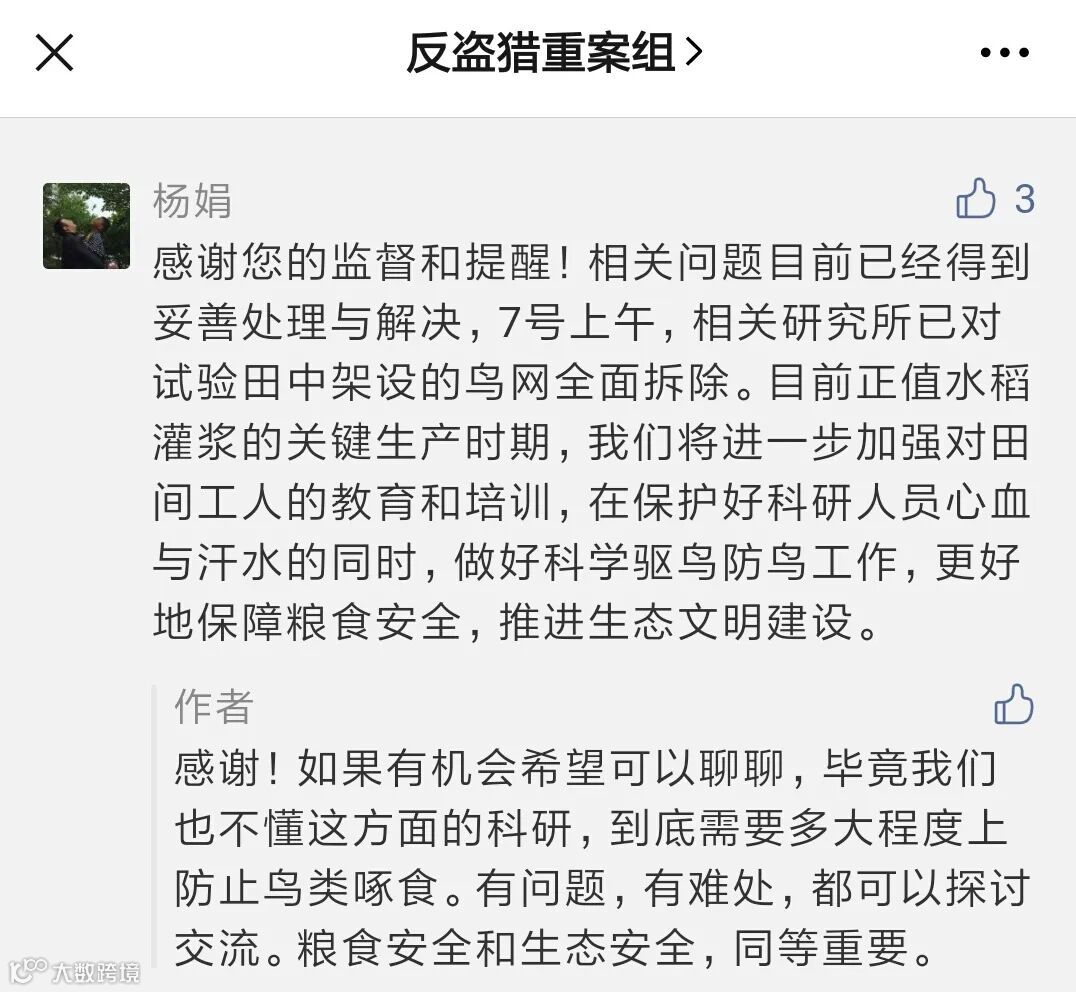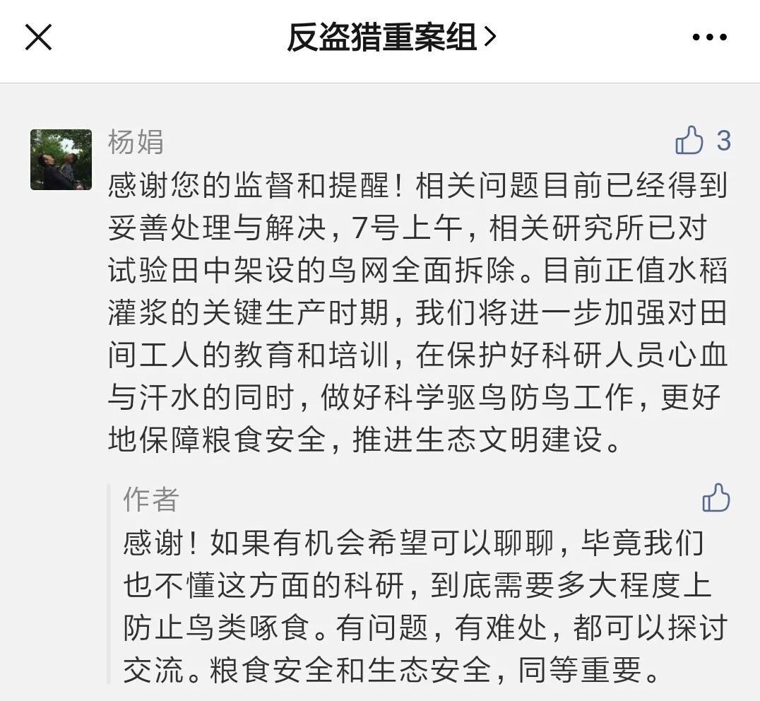 关于农业科研机构架设捕鸟网的问题,我们也将持续跟进……