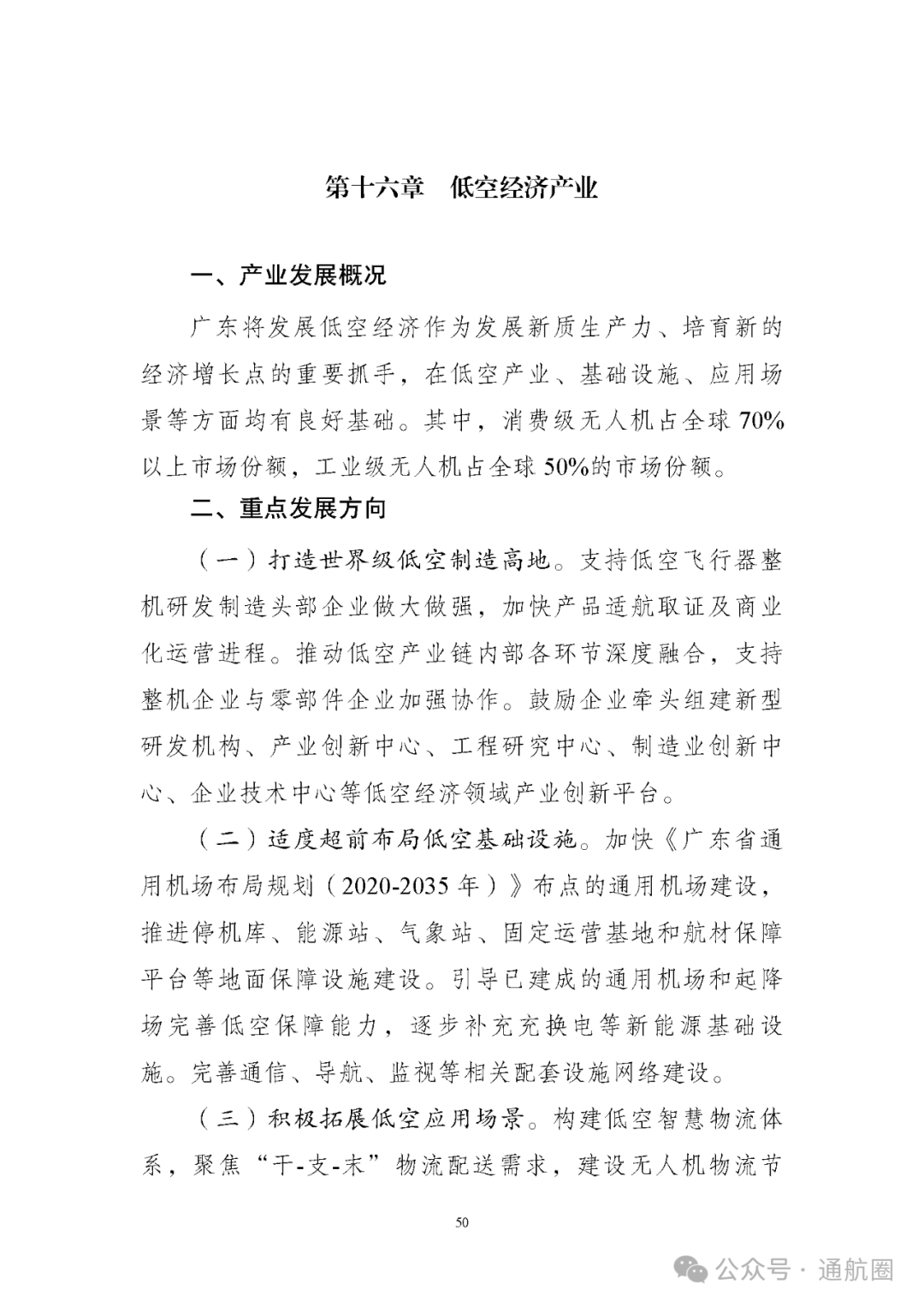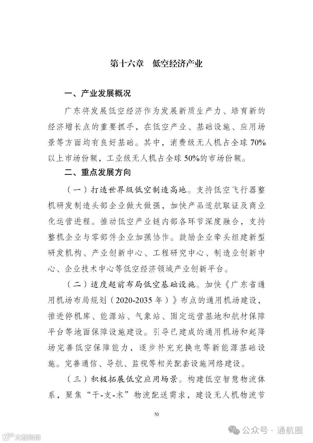 广东省低空经济重点发展方向:打造世界级低空制造高地,适度超前布局低空基础设施,积极拓展低空应用场景。