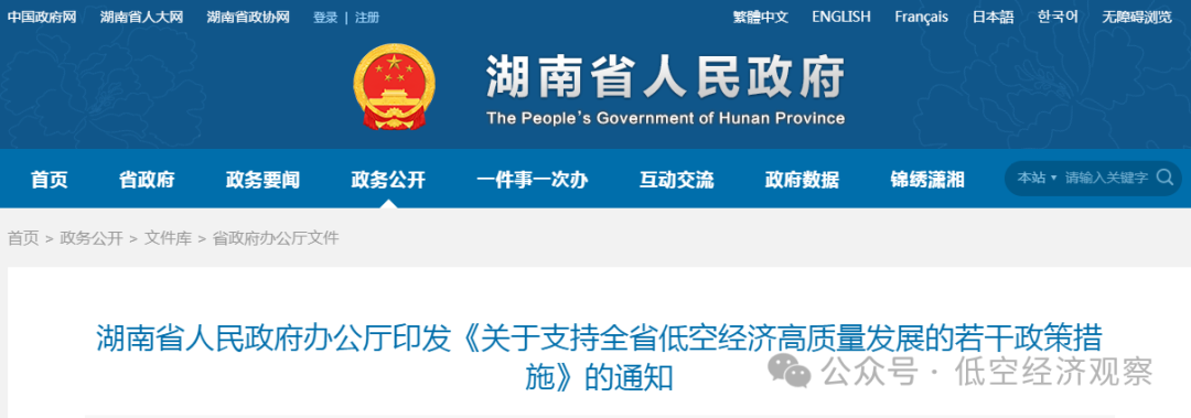 ■ 湖南省政府办公厅印发《关于支持全省低空经济高质量发展的若干政策措施》