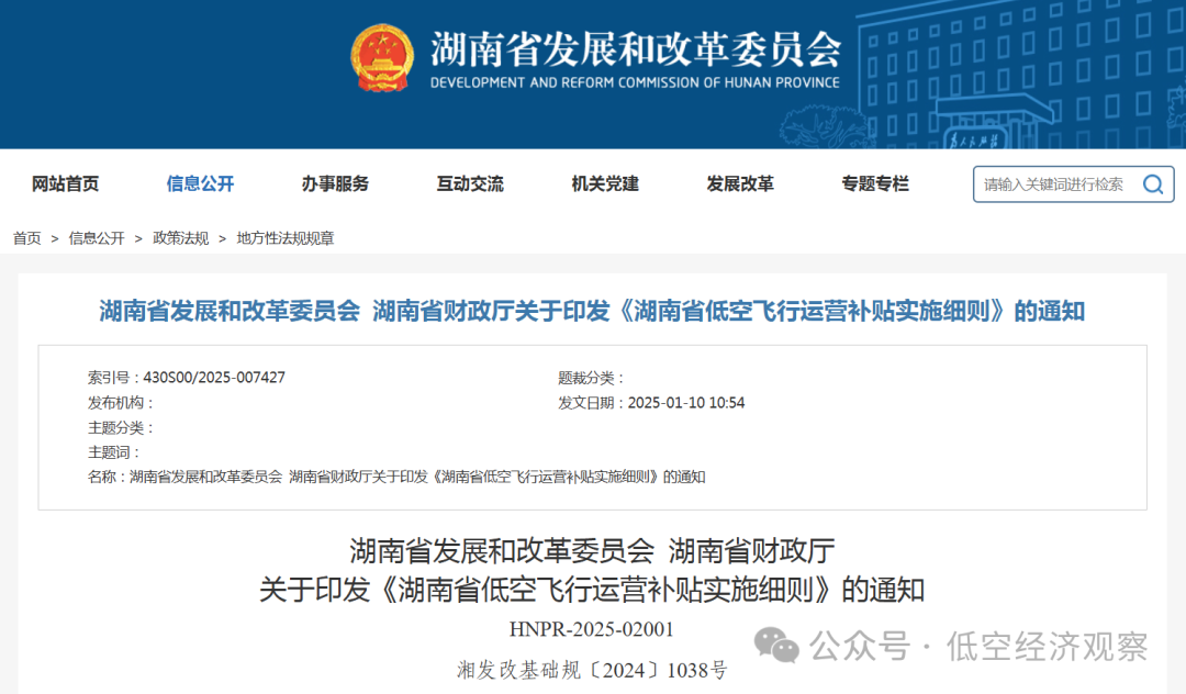 信息来源:湖南省发展改革委网站,「低空经济观察」编辑整理。