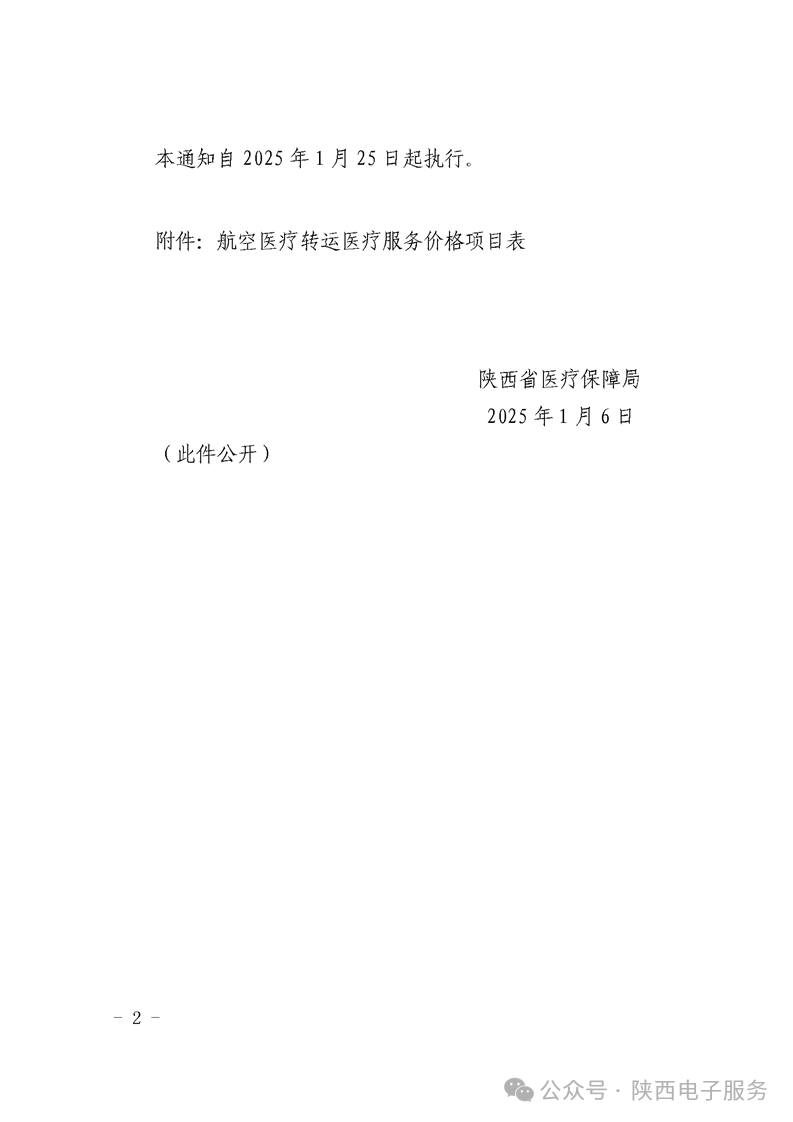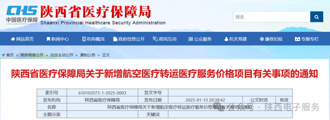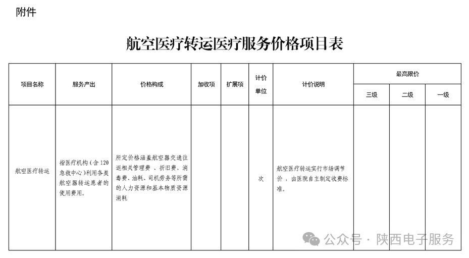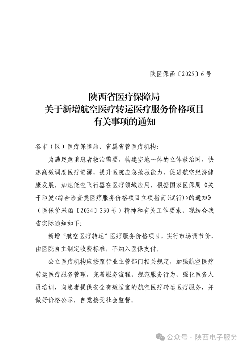 陕西省医疗保障局关于新增航空医疗转运医疗服务价格项目有关事项的通知