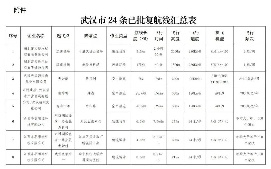 武汉市交通运输局发言人指出,低空试点航线作为低空经济的“先行区”,正在为城市物流运输、智慧交通、应急救援等提供新方案,成为释放市场潜力、助力经济增长的重要引擎。他表示,配套出台的《低空交通管理实施细则》即将实施,将突破空域管理、安全监管等政策瓶颈。预计到2030年,全国低空经济规模将达到2.5万亿元。