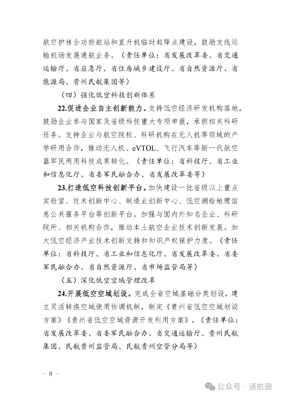 贵州还拟培育打造一批覆盖研发设计、 生产制造、验证试飞、运营保障等生态完善、特色突出的低空经济产业园区,建设民用无人驾驶航空试验基地(试验区)、低空算力经济先行区、低空经济示范区,开展市(州)示范试点。